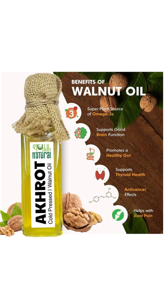 BENEFITS FOR SKIN: Applying Cold Pressed Walnut oil may have anti-ageing benefits like reducing wrinkles and fine lines, it also helps promote good and healthy skin.