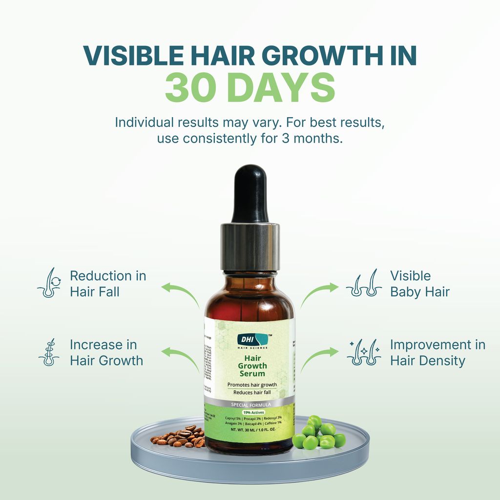 Backed by advanced dermatological science and clinical studies, DHI™ Hair Growth Serum is proven to deliver visible results in as little as one month. With consistent daily use, users have reported:
