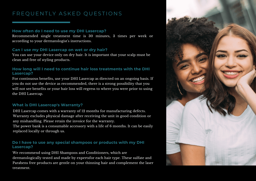- DHI Laser Cap comes with a warranty of 12 months for manufacturing defects.