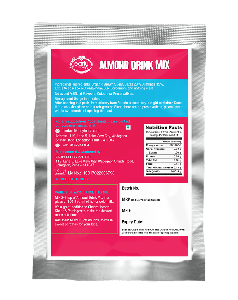 +918929345355 https://medical.preggerz.in/s/6123687a0e3882eabaee1e6e/667aa023756b50348aa03f23/newmi-care-red-480x480.png" [email protected] 622b3b635675b2a40fba3817 Early Foods (Trial Pack) Almond and Date Drink Mix with Makhana 50g https://medical.preggerz.in/s/6123687a0e3882eabaee1e6e/622b7e49f078f6aa6cc3f62b/almond-drink-mix-front.png Early Foods (Trial Pack) Almond and Date Drink Mix with Makhana 50g