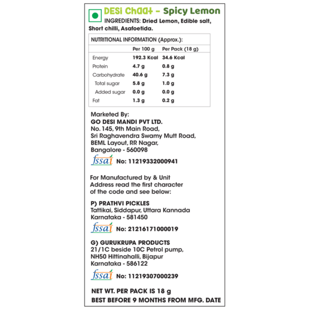 +918929345355 https://medical.preggerz.in/s/6123687a0e3882eabaee1e6e/667aa023756b50348aa03f23/newmi-care-red-480x480.png" [email protected] 62399472c671c3bcdaf3ebb5 GO DESi Lemon Chaat, Desi chaat, Lemon Candy, 180 gm, Pack of 10 Pouches https://medical.preggerz.in/s/6123687a0e3882eabaee1e6e/6239a1d0e3774cbd0701724b/lc-180.jpg Description: