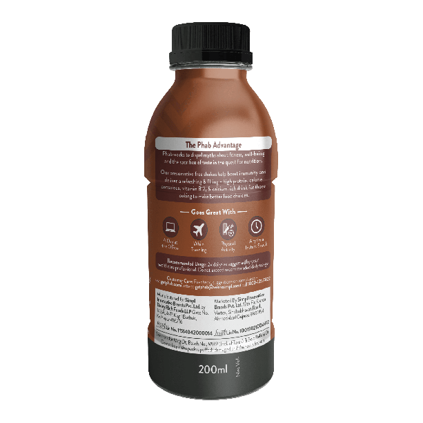 • Made from no-compromise milk protein Phab's Protein Milkshakes are full of flavour and packed with protein, Vitamin B12, Calcium and immunity boosters without any unwanted calories from added sugar or trans-fats