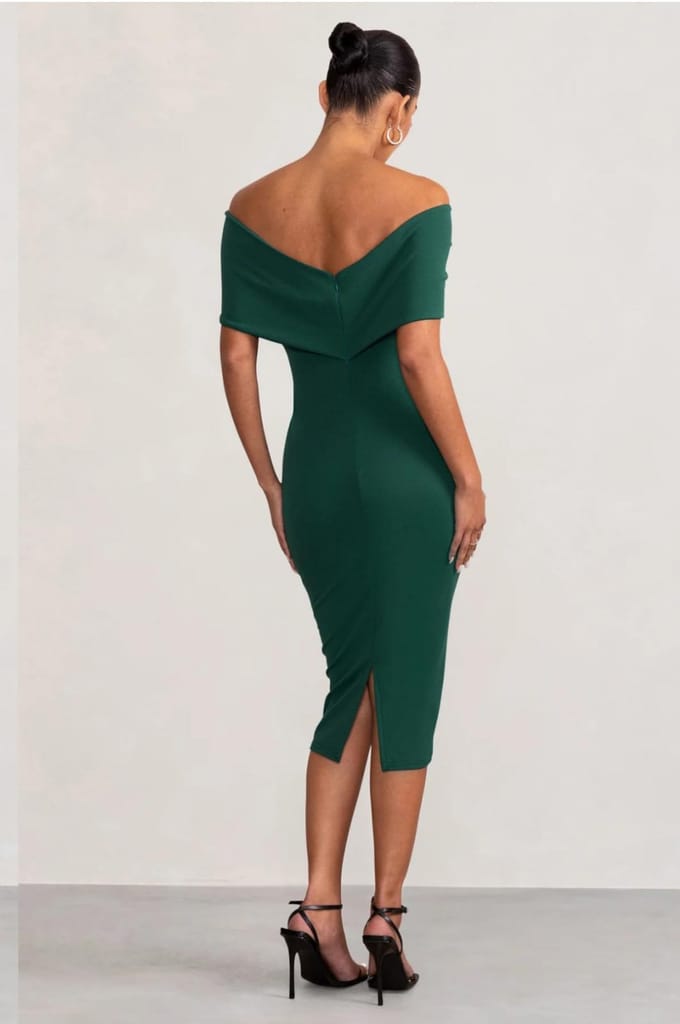 Power Green Bardot Bow Maternity Midi Dress With Ruching