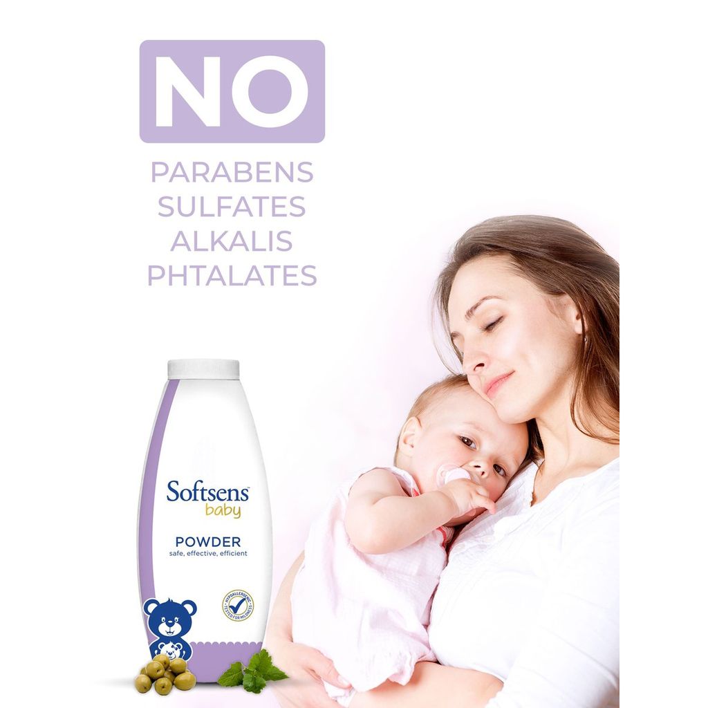 Babies have extremely sensitive skin which is prone to rashes and irritations that are caused by skin friction and sweat. Softsens Baby Powder gently absorbs excess moisture, and soothes and protects your baby's delicate skin, leaving it nourished and healthy