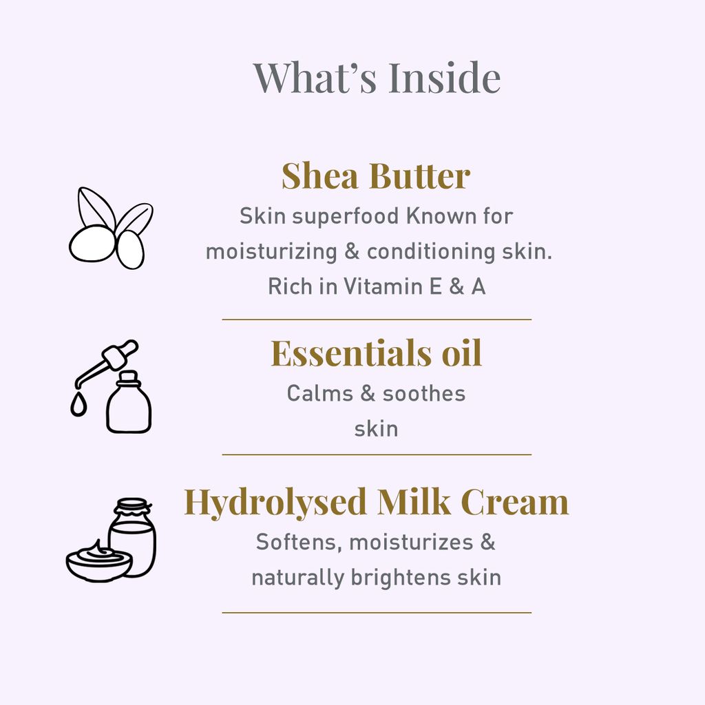 The two key ingredients in Softsens Baby Milk Bar soap are milk cream and shea butter that are known for their gentle skin-nourishing and moisturizing properties