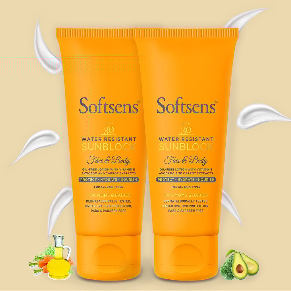 Yes, the Softsens SPF 30+ Sunblock Lotion is formulated to be water-resistant. However, as with any other sunblock, we recommend that you reapply it every 90 minutes to keep skin safe and protected. This lotion also has a dry-touch technology to ensure that it spreads easily without leaving behind any white residue.