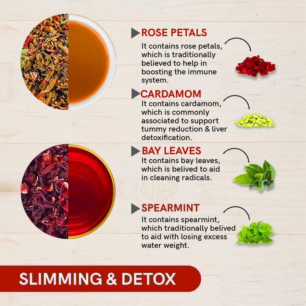 - Slimming tea present in Premium Slimming & Detox Gift Box helps with fat burn and in turn assists with tummy reduction.