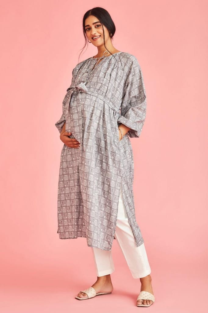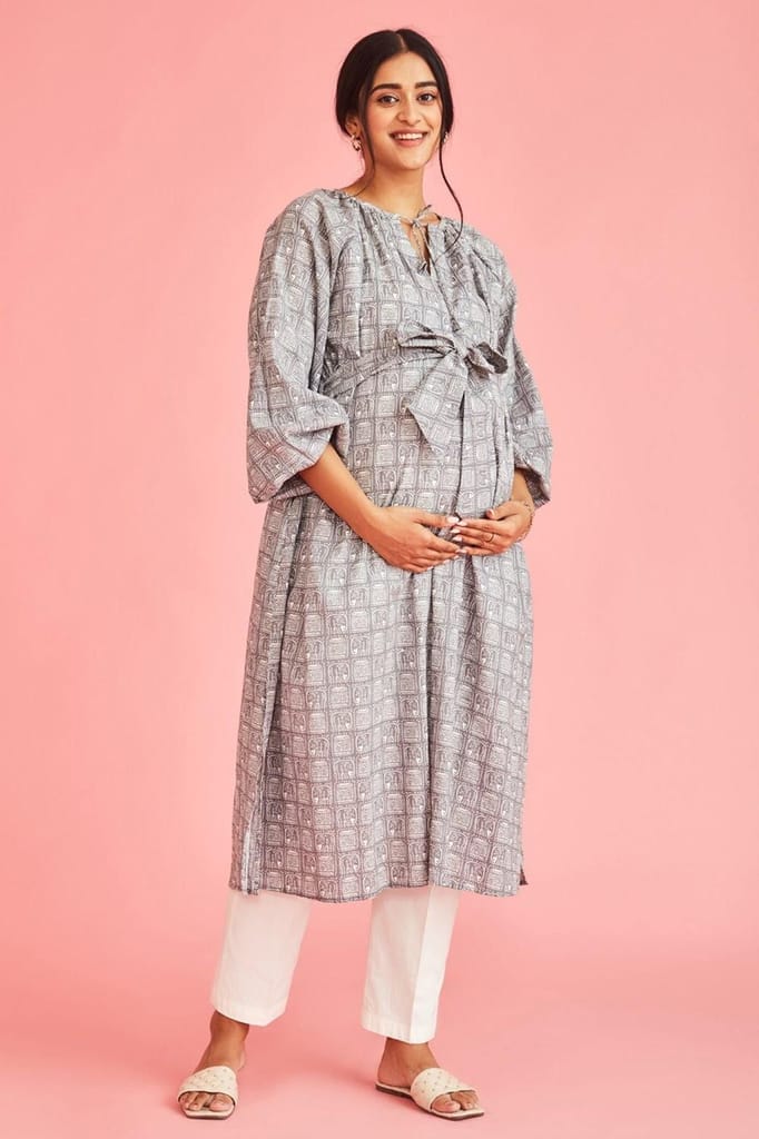 - The Kurta features a belt that ties in & secure over your bump, as well as easy fuss-free nursing access for after baby is born.