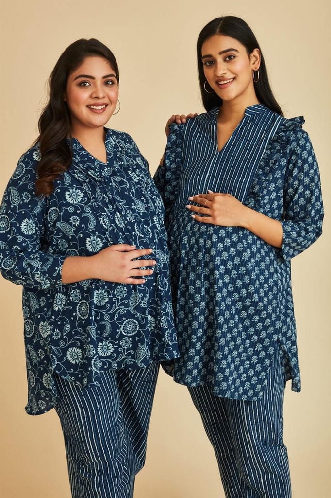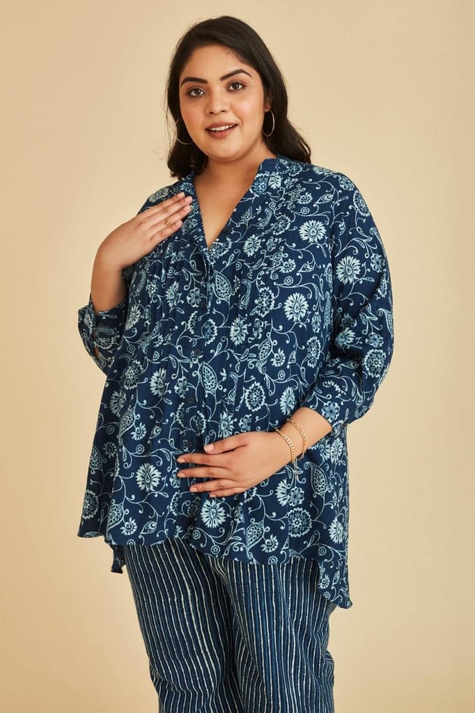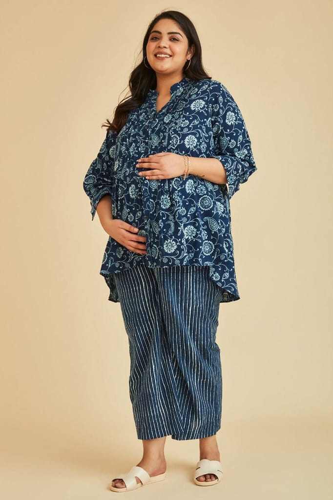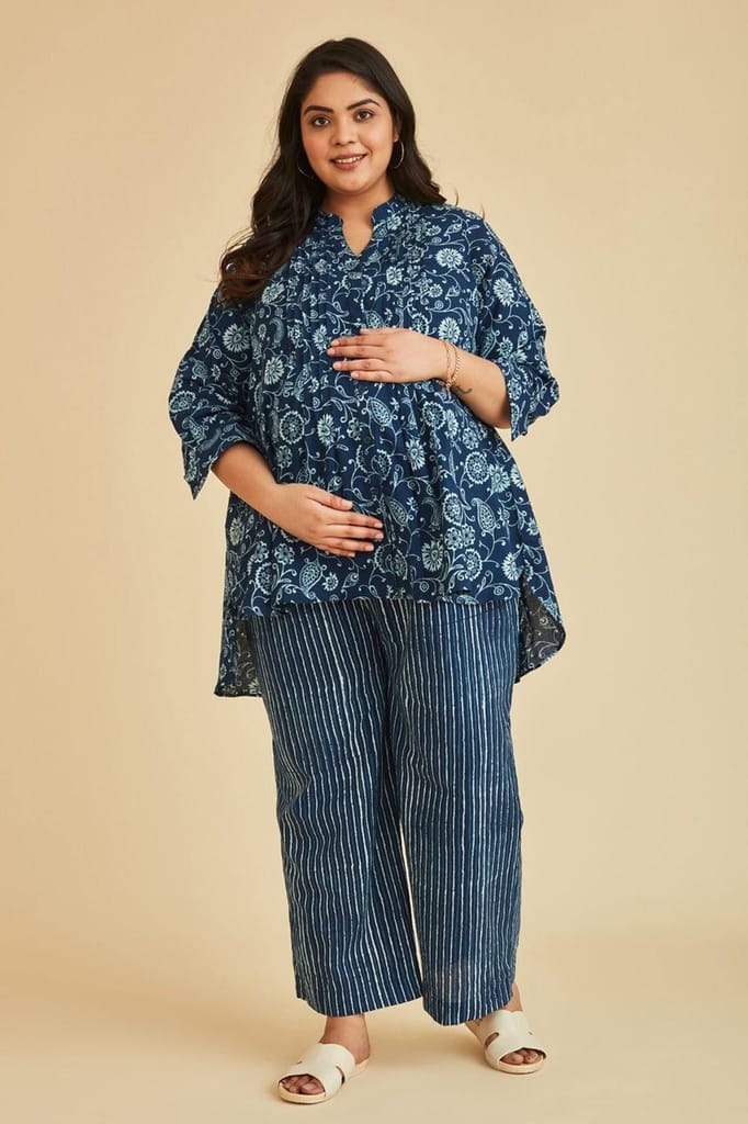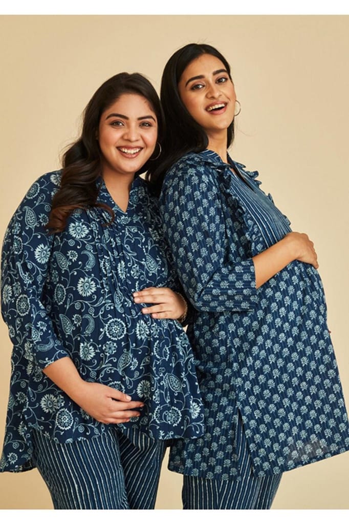 - The Mama Project Grace Nursing & Maternity Indigo Kurta Set