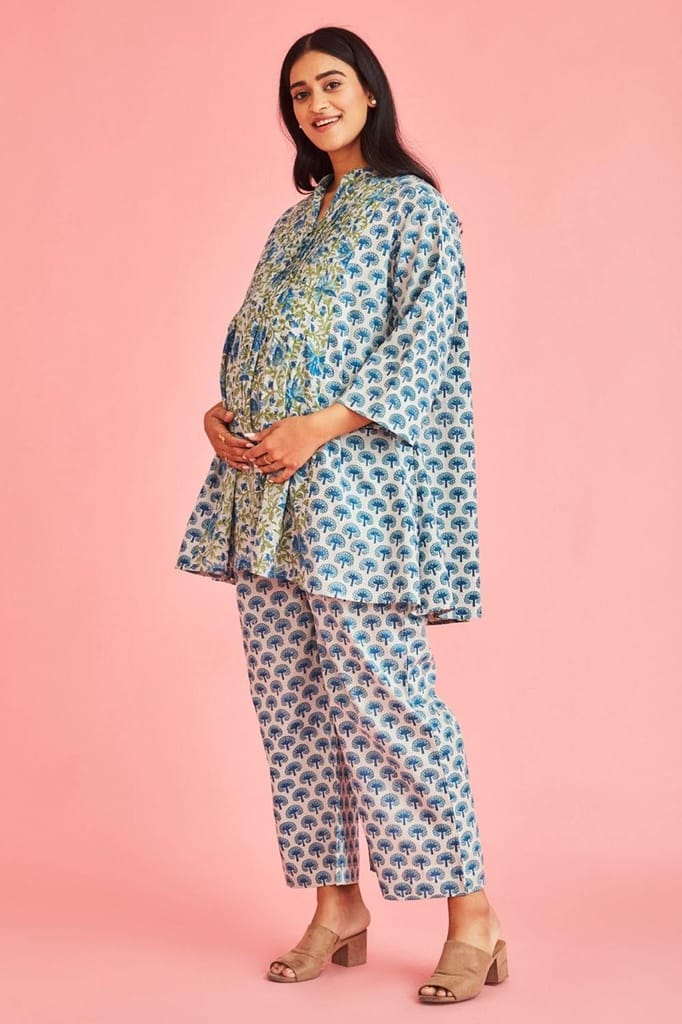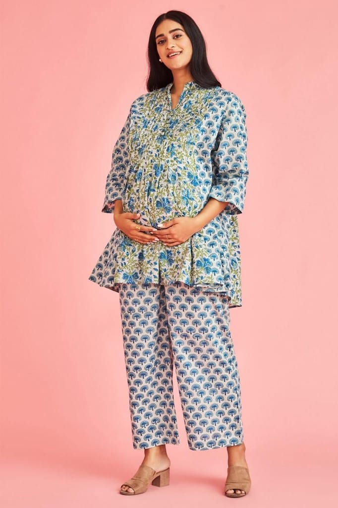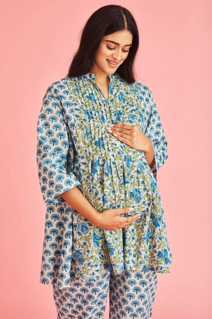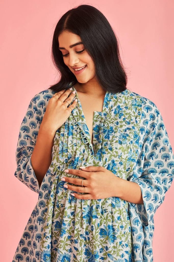- The Kurta features pleats that add enough room for the growing bump, as well as easy front opening placket for feeding when the baby is born.