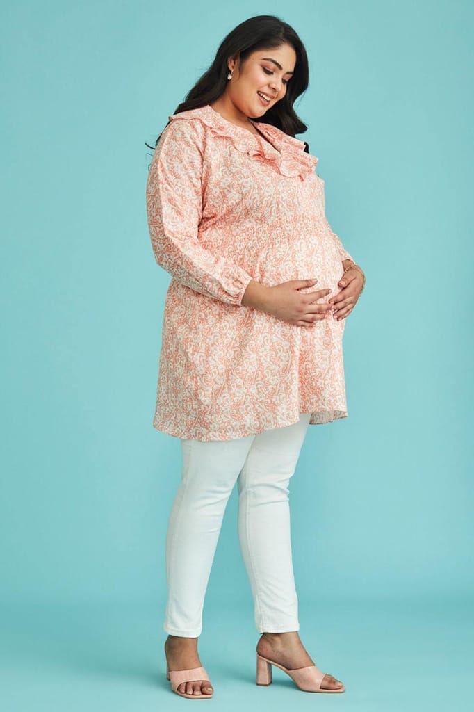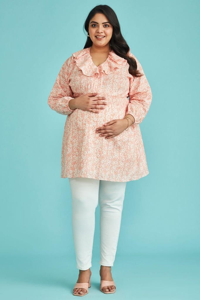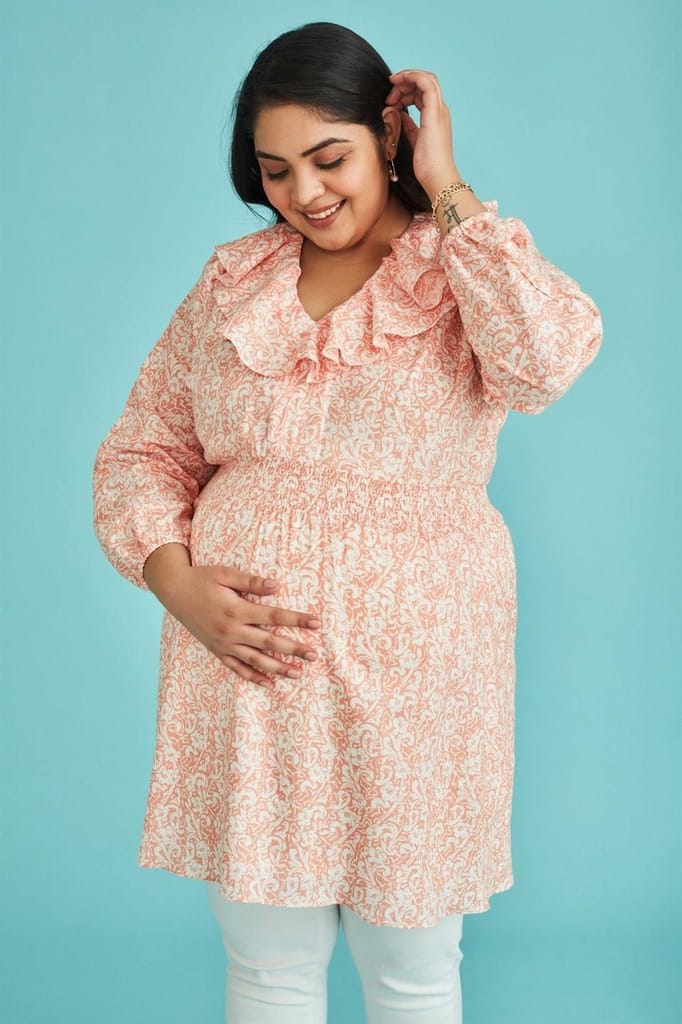 - Myra flounced neck Nursing & Maternity top is made in organic cotton fabric lined with soft cotton voil.