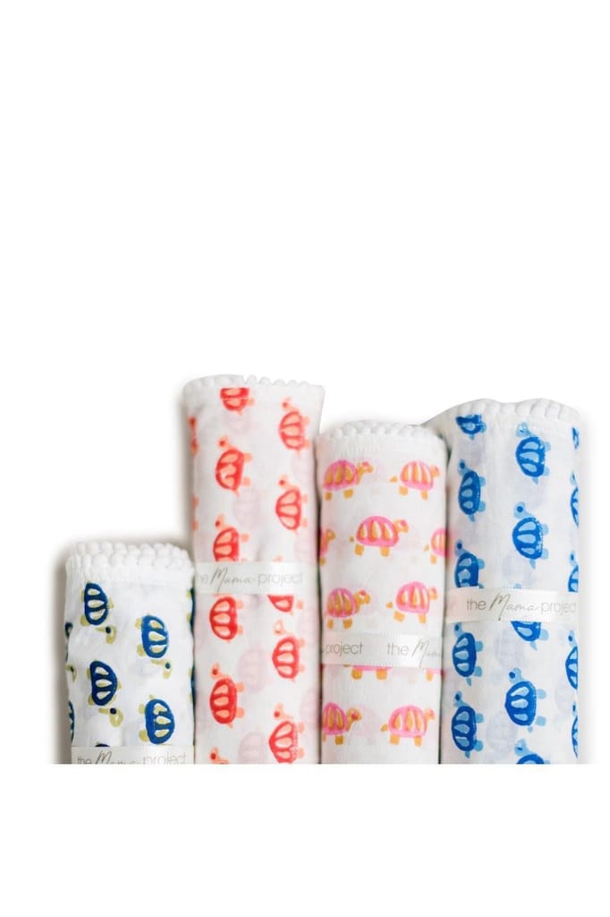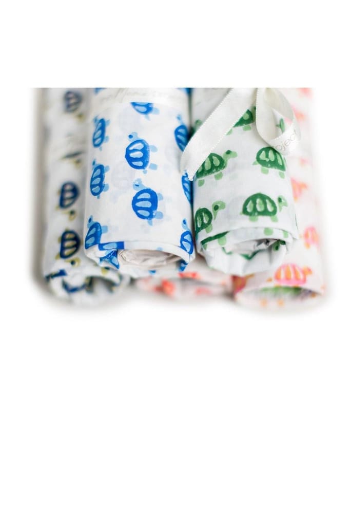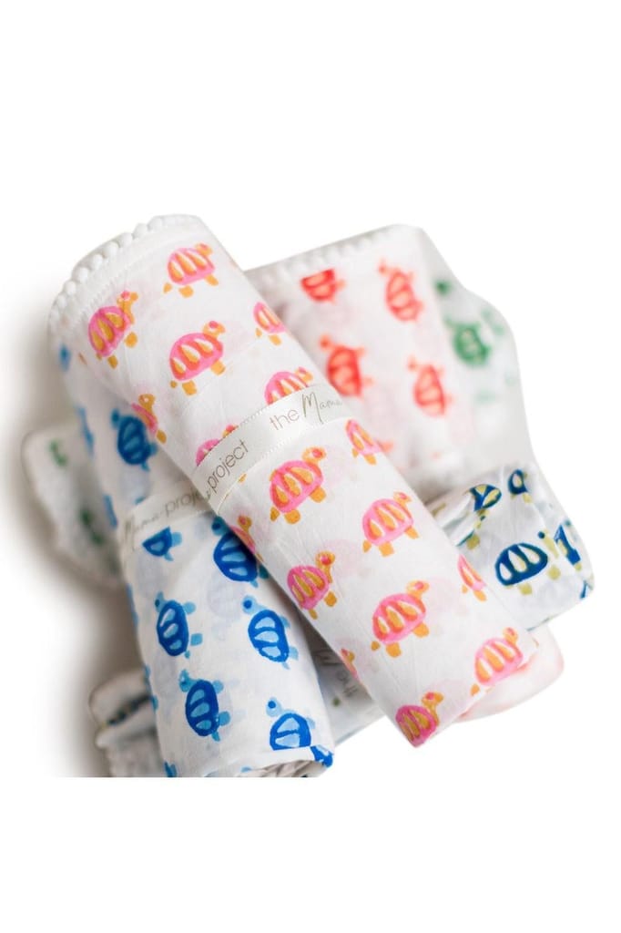 The Mama Project Turtle Love Organic Muslin Swaddle Sheet Gift Bundle- Pack of 5