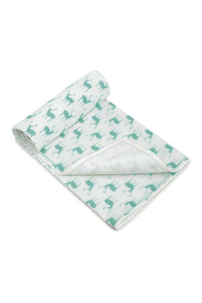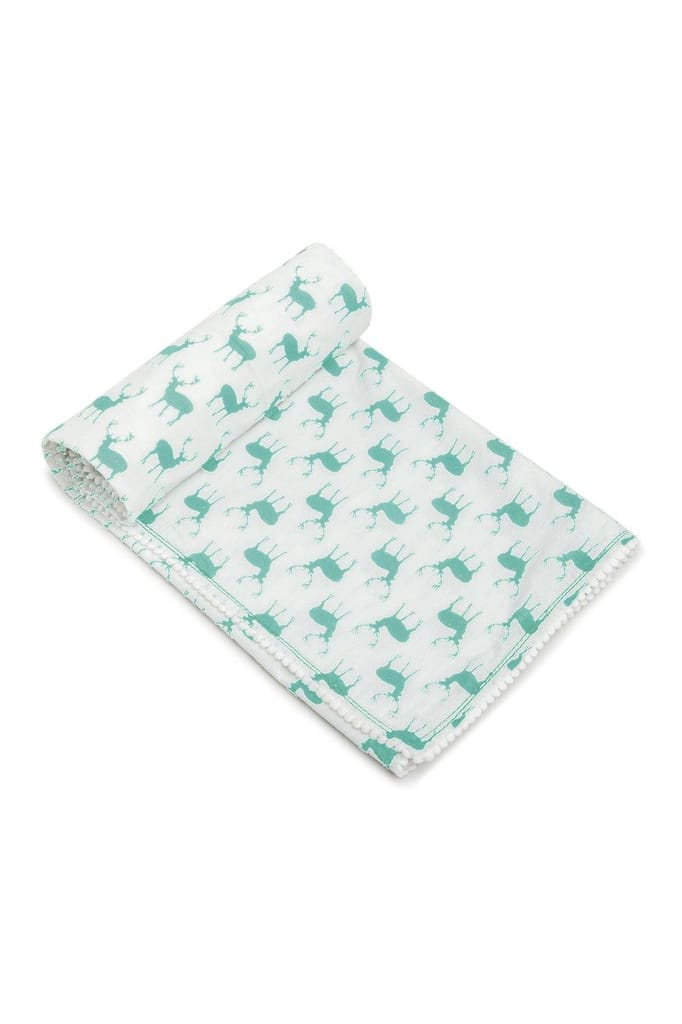The Mama Project Wanderlust With Reindeers Organic Muslin Blanket
