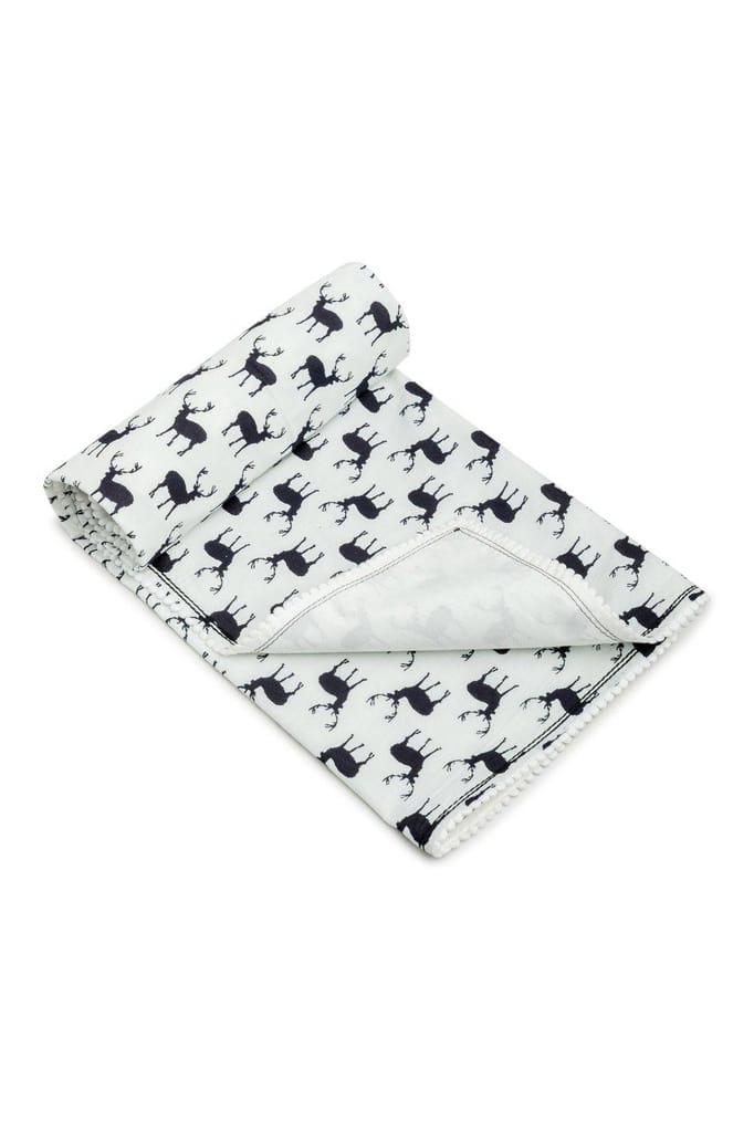 The Mama Project Wanderlust With Reindeers Organic Muslin Blanket